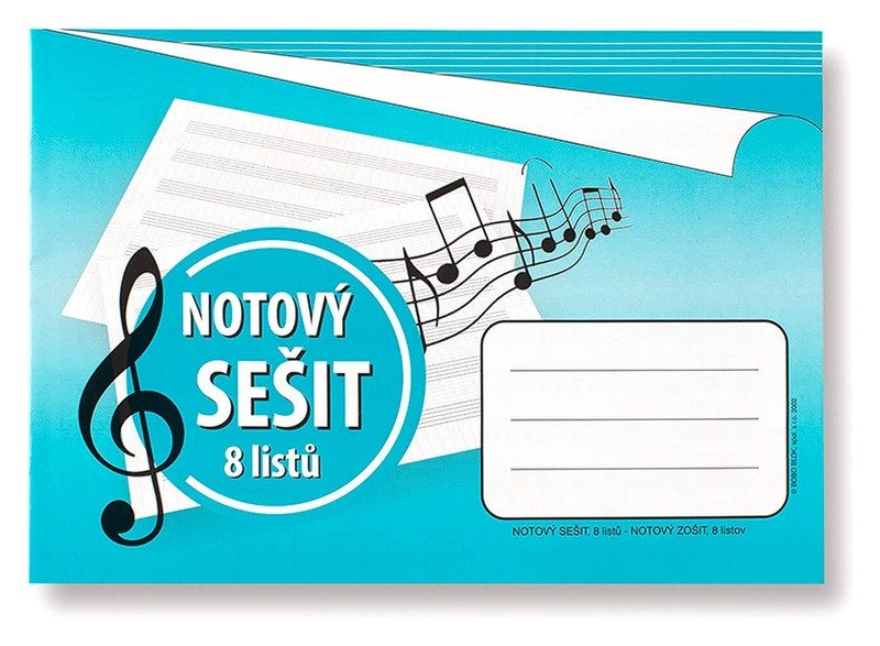 Notový sešit ve formátu A5 bude k ruce každému nadějnému hudebníkovi. br brNotový sešit s předtištěnou notovou osnovou. br• Formát: A5 br• Počet listů: 8 br• Vazba: šitá