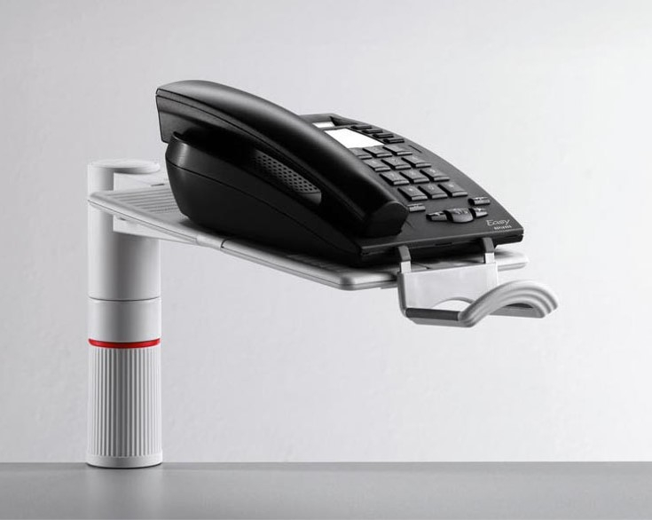Otočný držák telefonu vhodný do kanceláře pro vytvoření profesionálního pracoviště na minimálním prostoru. Upevnění ke stolu univerzální svorkou, která je vhodná pro většinu stolů. Jednoduché a rychlé připevnění bez použití nářadí. Lze namontovat podélně i příčně.nosnost 6 kgvýška cca 470 mmvýška nad deskou stolu 140 mm, celková výška 215 mmrozměr nosné desky 258 x 172 mmtloušťka desky stolu 18-74 mmmobsah balení: 1 ks