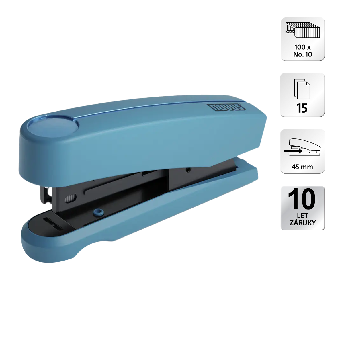 Kompaktní a výkonná sešívačka menší velikosti pro efektivní práci doma nebo v kanceláři. Odolná, celokovová konstrukce s částečným plastovým krytem pro dlouhou životnost a spolehlivý výkon. Snadné příbíjení sponek na vertikální povrch, pevný způsob sešívání. Integrovaný odstraňovač sponek, horní plnění pro snadné a rychlé doplnění. Ergonomický design a moderní barvy.hloubka vkládání: 45 mmkapacita: 15 listů (80 g/m²)barva: modrá petrolejováhmotnost: 100 gvertikální použití, pevný způsob sešíváníhorní plnění sponek, integrovaný odstraňovač sponekzáruka 10 letobsah balení: 1 ks vč. 100 sponek No. 10 SUPER