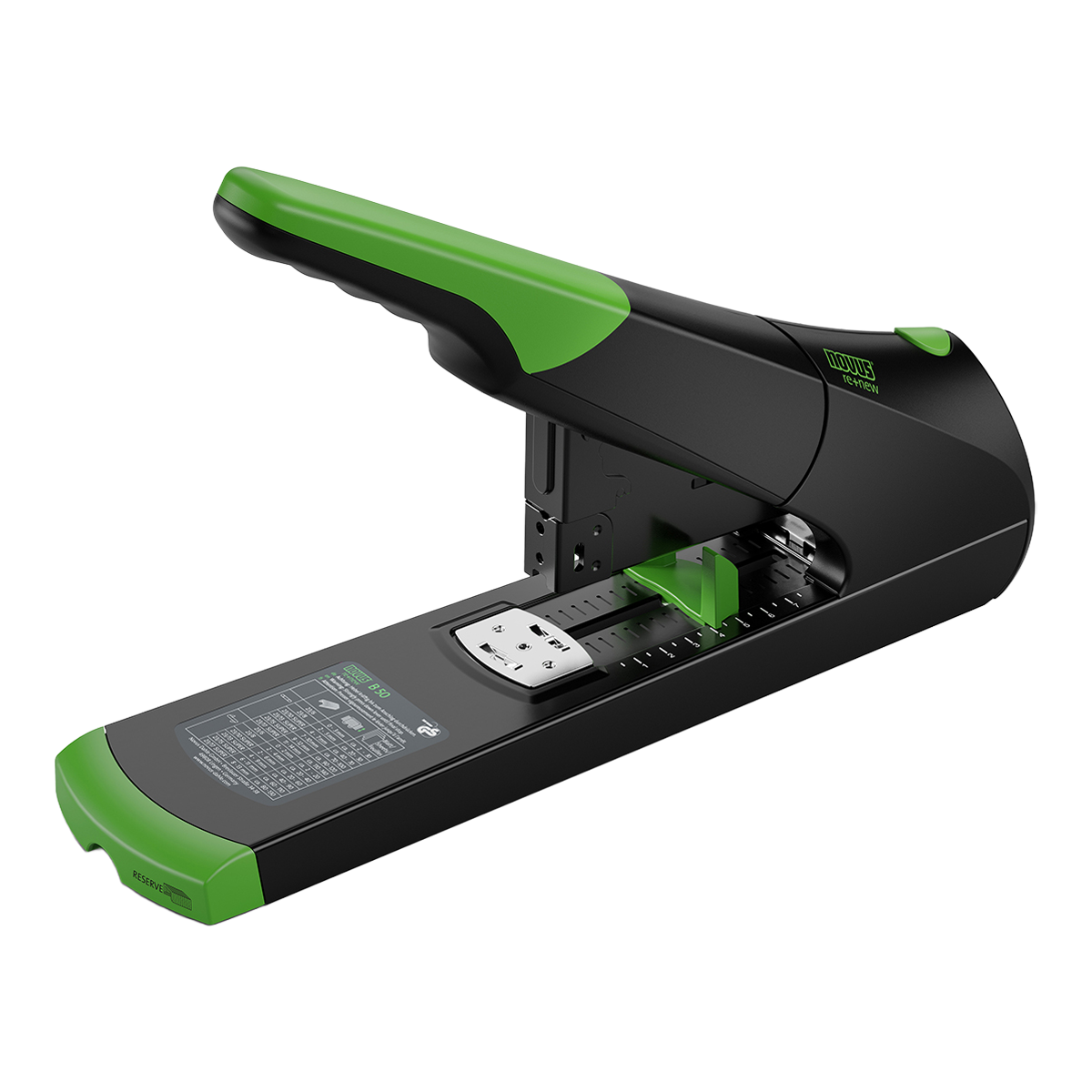 Udržitelná a odolná sešívačka s dlouhou životností a velkým výkonem sešívání až 140 listů. Celokovová konstrukce s pláštěm z recyklačního plastu. Antiblokovací systém (ABS) pro komfortní, bezporuchové sešívání. Dvojité vedení sponek v kombinaci s otočnou maticí nabízí rychlé a přesné střídání paralelního a bypassového sešívání. Stlačením tlačítka na sešívačce vyjede zásobník na spony. Expresní odstranění poruchy sešívání.variabilní hloubka vkládání: až 75 mmkapacita: 140 listů (80 g/m²)barva: černo-zelenáhmotnost: 1460 godolné sešití dokumentů, recyklovaný plast, 81 % recyklovaný plastna 100 ks sponek od typu 23/6 až 23/17 SUPERzáruka 25 letobsah balení: 1 ks