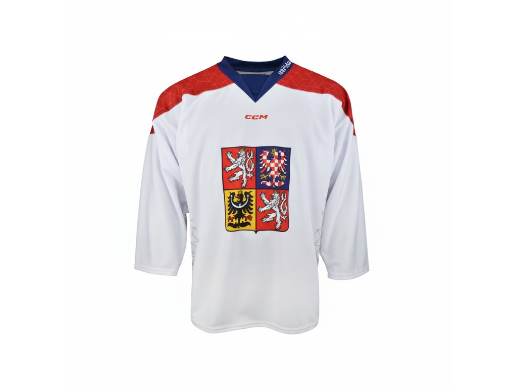 Originální fanouškovská replika nového hráčského dresu České hokejové reprezentace 2025/2026 v bílé barvě. Dres je v základním provedení, tedy bez čísla a bez jmenovky s tištěným národním znakem na hrudi.Materiál: 100% polyester Na objednávku je možné na dres dotisknout jakékoliv jméno a číslo - vyberte položku POTISK DRESU. Zakupte produkt Nový dres české hokejové reprezentace 2025/2026 CCM Fandres replica - bílý Velikost: golmanský L z kategorie ČESKÝ HOKEJ od výrobce CCM za cenu 1599,00 Kč.