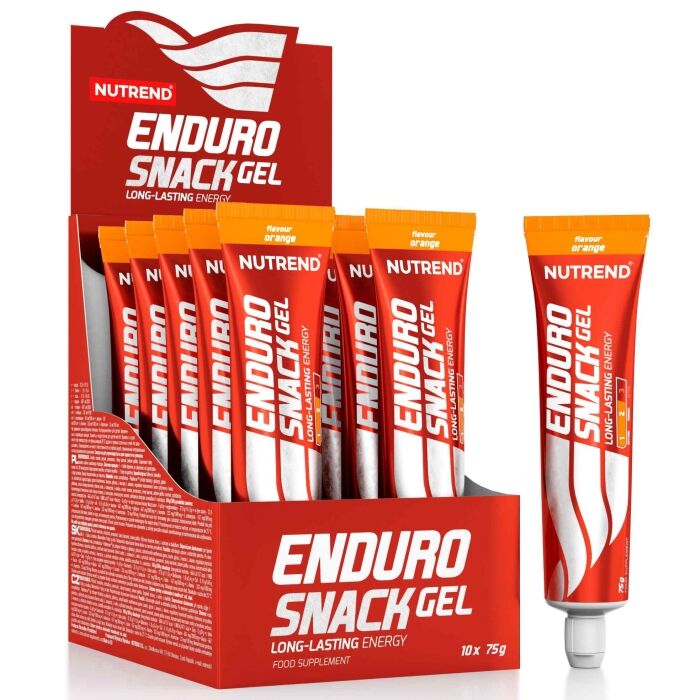 Nutrend Endurosnack je inovovaný energetický gel s postupným uvolňováním energie. Gelové produkty mají uplatnění zejména při náročné sportovní aktivitě s vysokou tepovou frekvencí, kdy tělo není schopno přijímat pevnou stravu. Hlavní složku Endurosnack tvoří disacharid isomaltulóza (Palatinose™), který je navíc obohacen o taurin, L-karnosin, BCAA a také o glukogenní aminokyseliny glycin a L-alanin. Nové vylepšené složení je zcela bez barviv, bez lepku a má mnohem lepší chuť. Výhody praktická forma znovu uzavíratelných tub postupně se uvolňující izomaltulóza (Palatinose™) obohacený o L-karnosin, BCAA a taurin přidáno glukogenní aminokyseliny glycin a L-alanin bez lepku Sacharidy přispívají k obnově normální svalové funkce (kontrakce) po vysoce intenzivním a/nebo dlouhotrvajícím fyzickém výkonu, jehož výsledkem je svalová únava a vyčerpání zásob glykogenu v kosterním svalstvu. Doporučené dávkování Před zátěží užijte cca 20 minut 1 tubu a zapijte dostatečným množstvím sportovního nápoje. V průběhu zátěže užívejte pravidelně, během jedné hodiny lze užít 1 až 2 tuby. Vždy zapijte. Užívejte maximálně 4 tuby za den.