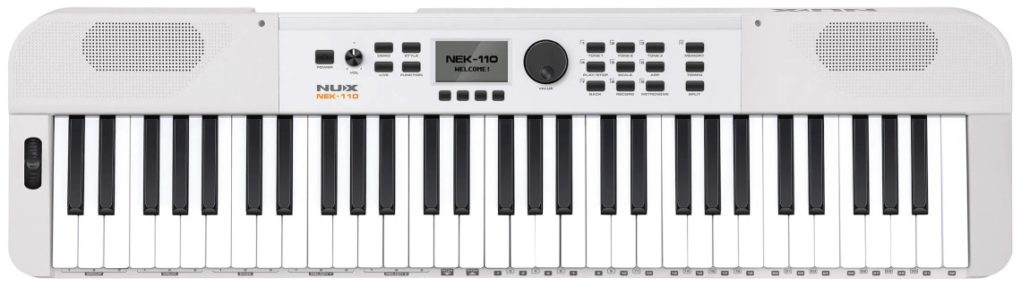 Keyboard s dynamikou - 61 kláves, 700 zvuků, 100 demo skladeb, polyfonie: max. 54 hlasů, efekty, USB Audio/MIDI, Bluetooth Audio/MIDI, integrovaný ozvučovací systém: 2x 2,5 W, napájení: 3000 mAh dobíjecí baterie / DC 12 V 2 A adaptér, barva: bílá