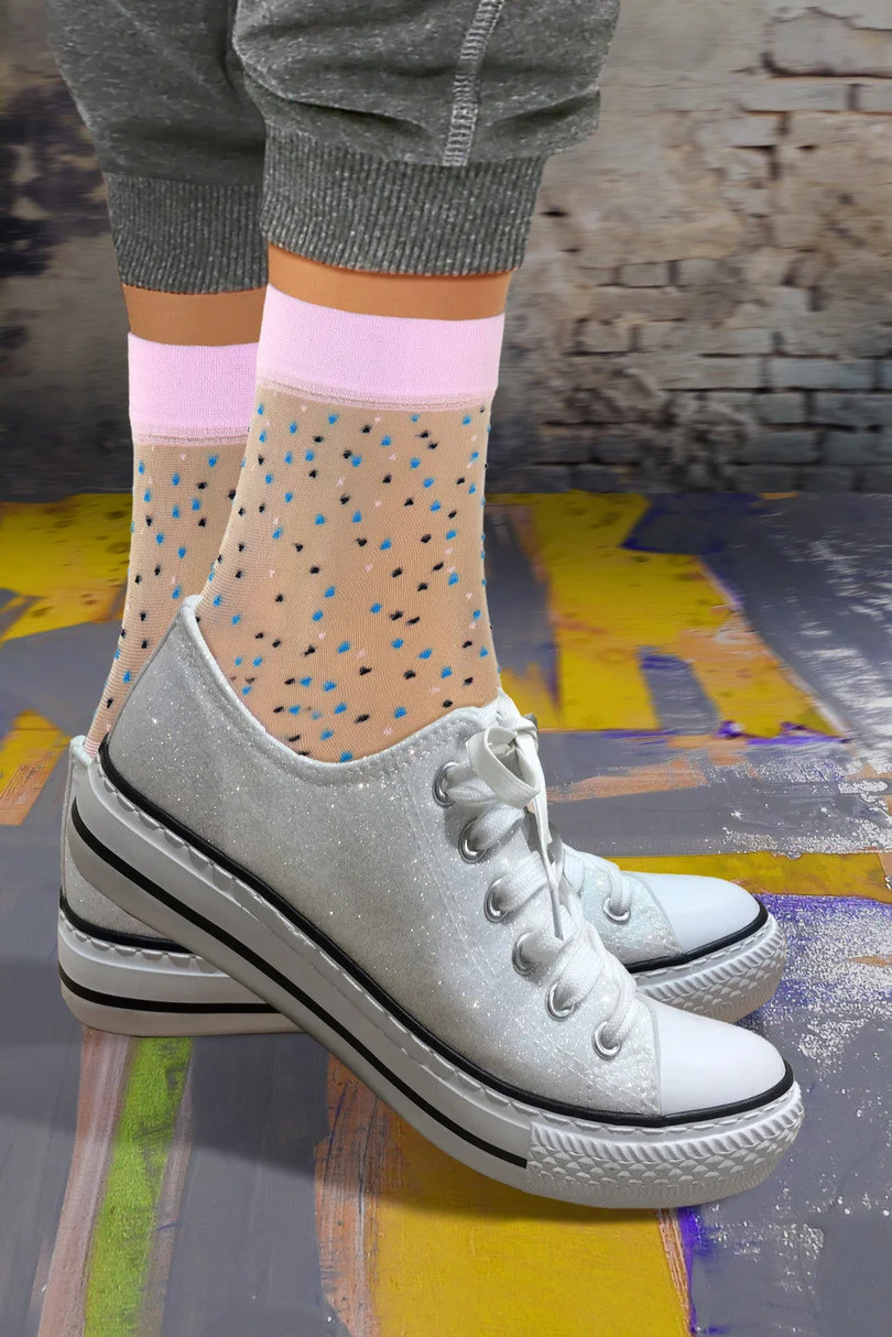 NYLONOVÁ PONOŽKA PERLEŤOVĚ RŮŽOVÁ/TEČKY UNICA