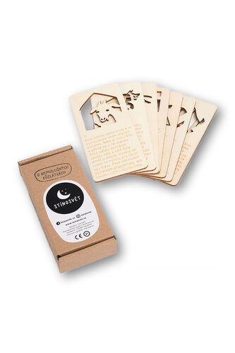 "Byla jednou jedna koza a ta vychovávala sedm malých kůzlátek…" A jak to bylo dál? Pojďte si spolu s dětmi vyprávět a zároveň si tuto klasickou pohádku promítnout na zeď. Kouzelná hra světla a stínů právě začíná. Pohádková sada obsahuje osm dřevěných kartiček určených k prosvícení. Kartičky jsou zhotovené tak, aby rodič, který skrz ně svítí, mohl zároveň předčítat pohádku. Délka vyprávění je asi osm minut, ale záleží jen na vás, kam až se svou představivostí necháte vést. Promítat můžete na zeď nebo strop pokoje. Zažijte neopakovatelné chvíle společného čtení s vašimi dětmi, které si prosvicovací kartičky zamilují.