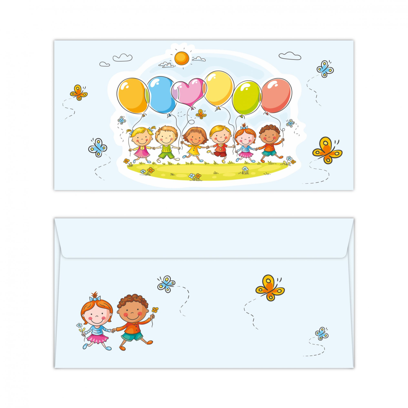 Celoroční dárková obálka s dětským motivem formátu DL je ideální pro dárkové účely pro ty, kteří chtějí předat přáníčko, dárkový poukaz či peníze elegantním způsobem v roztomilé obálce.