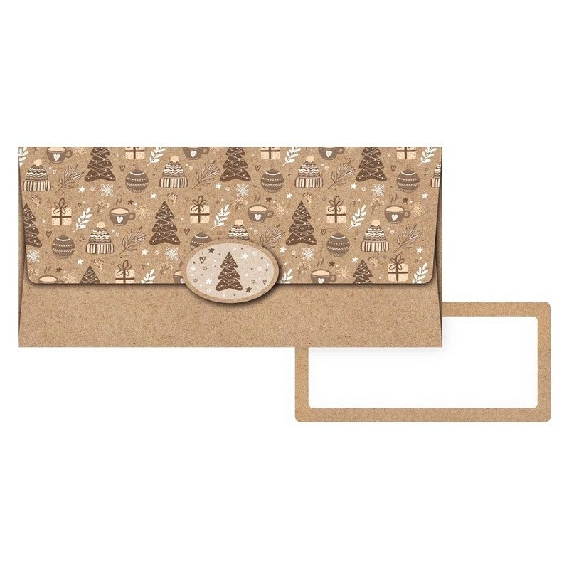 Dárková obálka na peníze s vánočními motivy a uzavíratelnou klopou. Je ideální pro dárkové účely, kdy chcete peníze předat elegantním a vkusným způsobem. Uvnitř je kartička bez textu, na kterou můžete napsat věnování.