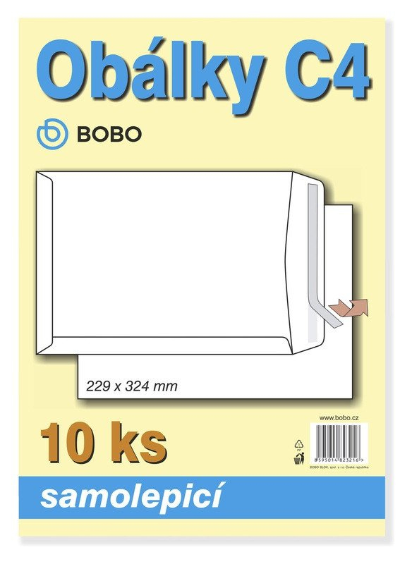 Obálky 229x324 mm, balení 10 ks. Balení klasických poštovních obálek ve formátu C4. Balíček obsahuje 10 kusů samolepicích obálek.