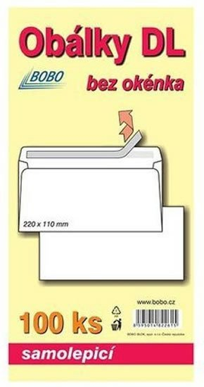 Obálka DL bez okénka, samolepicí Balení po 100ks. Balení klasických poštovních obálek ve formátu DL. Balíček obsahuje 100 kusů samolepicích obálek.