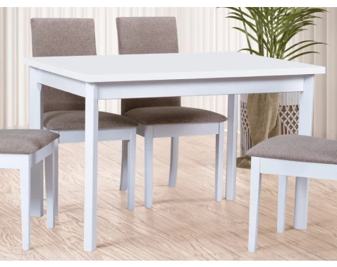 Klasický jídelní stůl o velikosti 120x80 cm v dekoru bělená borovice/bílý má obdélný tvar a hodí se do každé kuchyně a jídelny.