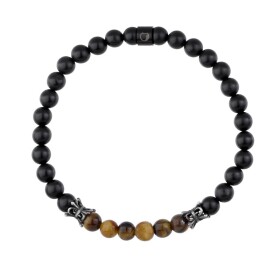 Korálkový náramek Domenico - 6 mm přírodní onyx a tygří oko, Hnědá 21 cm