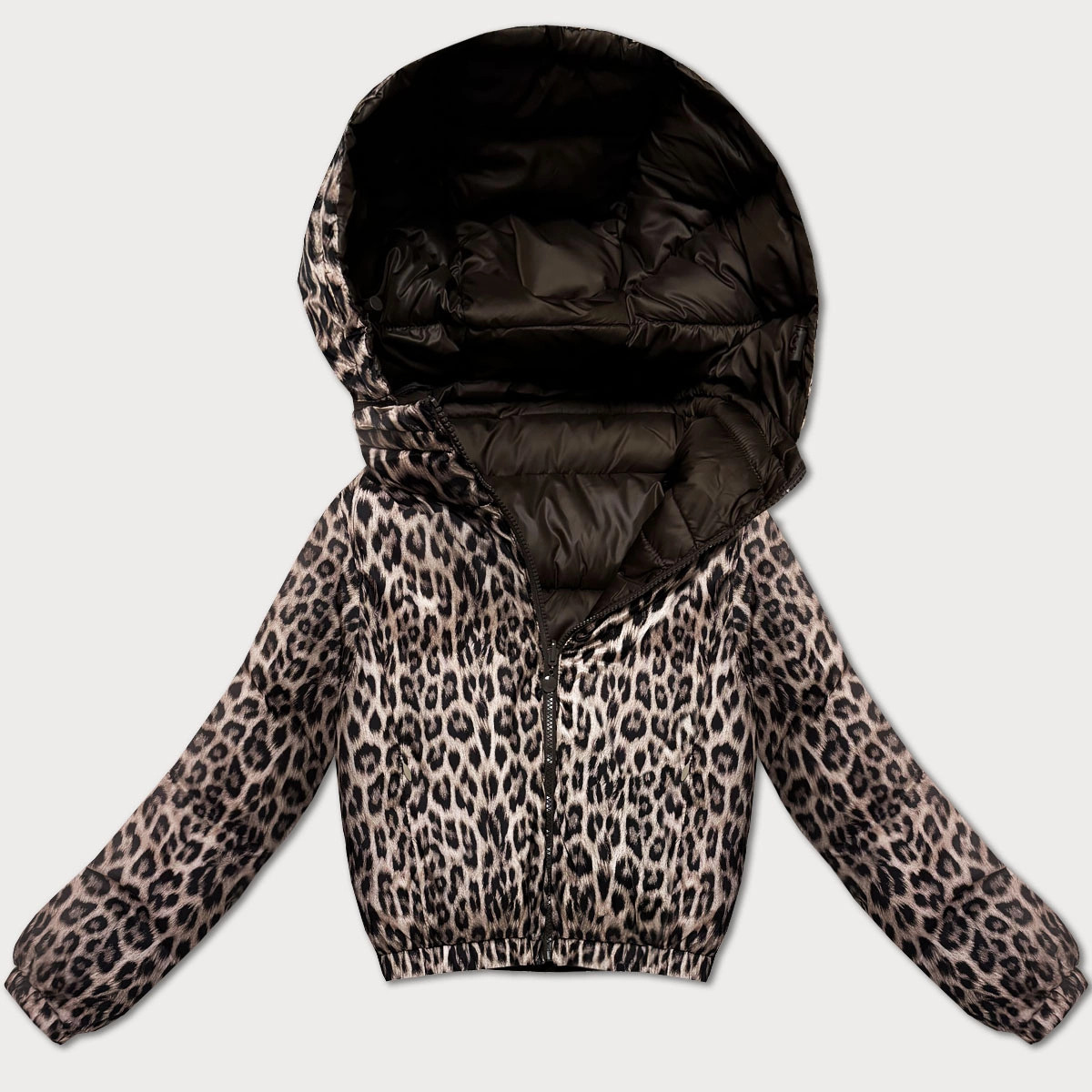 Oboustranná dámská krátká bunda v čokoládové barvě s panteřím vzorem Minority (M6-6001-103) odstíny hnědé M (38)