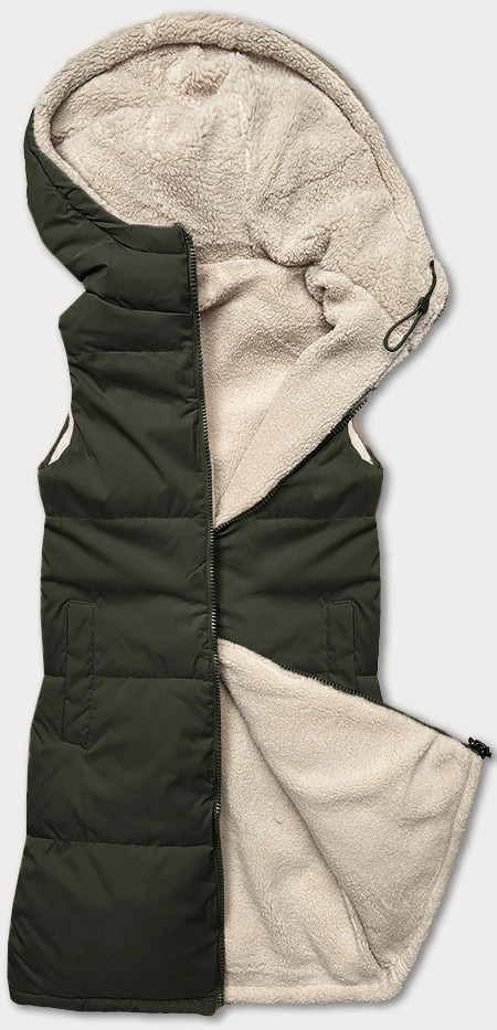 Oboustranná dámská vesta typu "beránek" v army barvě J Style (16M9166-136) odstíny zelené S (36)
