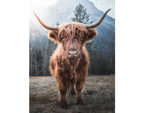Obraz na plátně 46x61 cm s motivem skotské krávy se stane nepřehlédnutou dekorací každého interiéru.