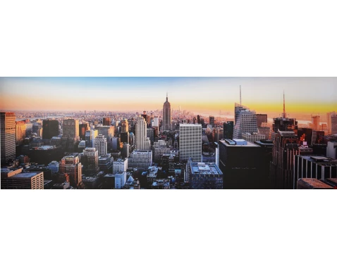 Panoramatický obraz tištěný na plátně s motivem velkoměsta dotvoří jedinečnou atmosféru domova. Rozměr 150x50 cm.