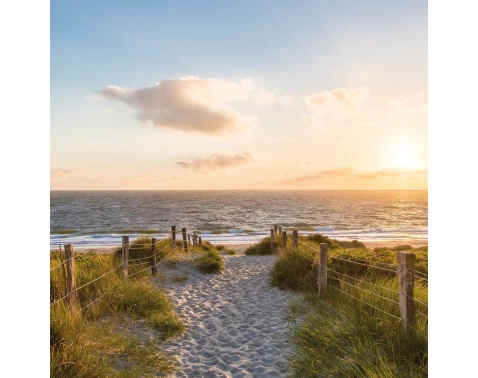 Čtvercový obraz na zeď o rozměru 35x35 cm s motivem pláže poskytne příjemný mořský vánek každé domácnosti. Do interiéru také vnese uklidňující atmosféru a pohodu.