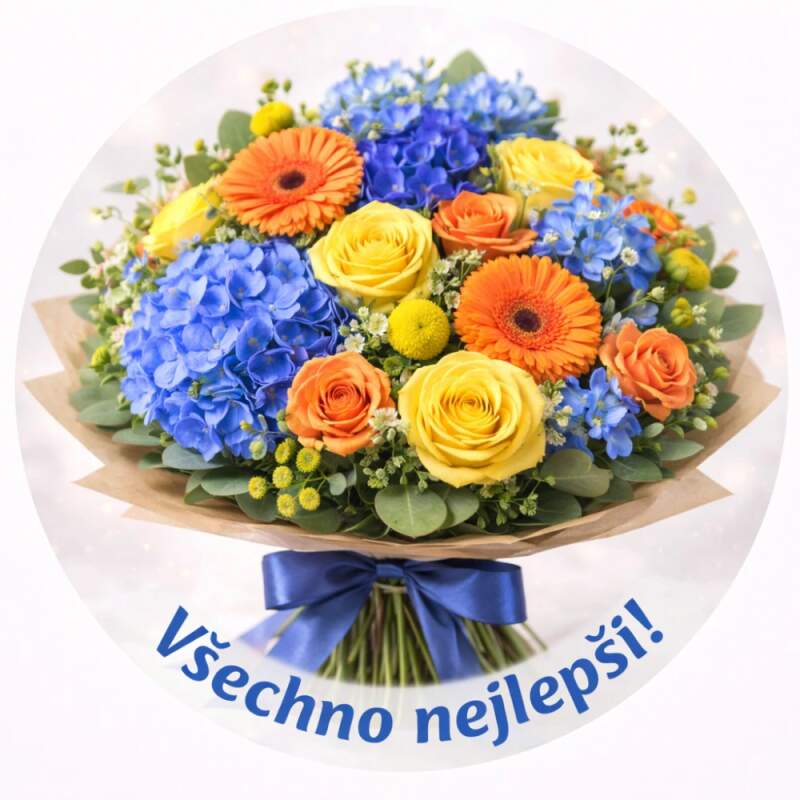 Obrázek Jedlý papír na dort Kytice modrá Všechno nejlepší