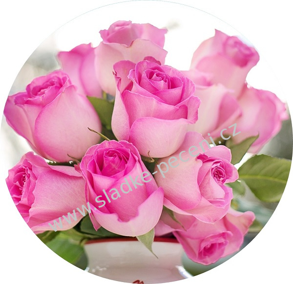 Obrázek Jedlý papír Růže růžové rozměr: cca 20 cm Upozornění: barevné odstíny obrázku se mohou z výrobních důvodů mírně lišit. Návod na přilepení obrázku: Pro úspěšné přilepení obrázku použijte Decor gel (speciální potravinářský gel na jedlý papír). Bez tohoto gelu se může obrázek vlivem vlhkosti kroutit. Obrázek potřete tenkou vrstvou gelu ze spodní strany a přilepte na dort. Poté potřete obrázek tenkou vrstvou také z vrchní strany. Nanášejte nožem nebo špachtlí. Jestliže nemáte gel, zkuste obrázek v několika bodech po obvodu přichytit malým množstvím máslového krému. Složení: bramborový škrob, voda, rostlinný olej (palma); barviva: E151,E122*,E133,E102*,E110* (barviva označené * mohou mít nepříznivý vliv na činnost a pozornost dětí). Výživové hodnoty na 100g výrobku: energie 1756,2 kJ/415,4 kcal; tuky 3,0 g ( z toho nasycené mastné kyseliny 0,4g); sacharidy 78,3 g (z toho cukry 0g); bílkoviny 0,1g; sůl 0g