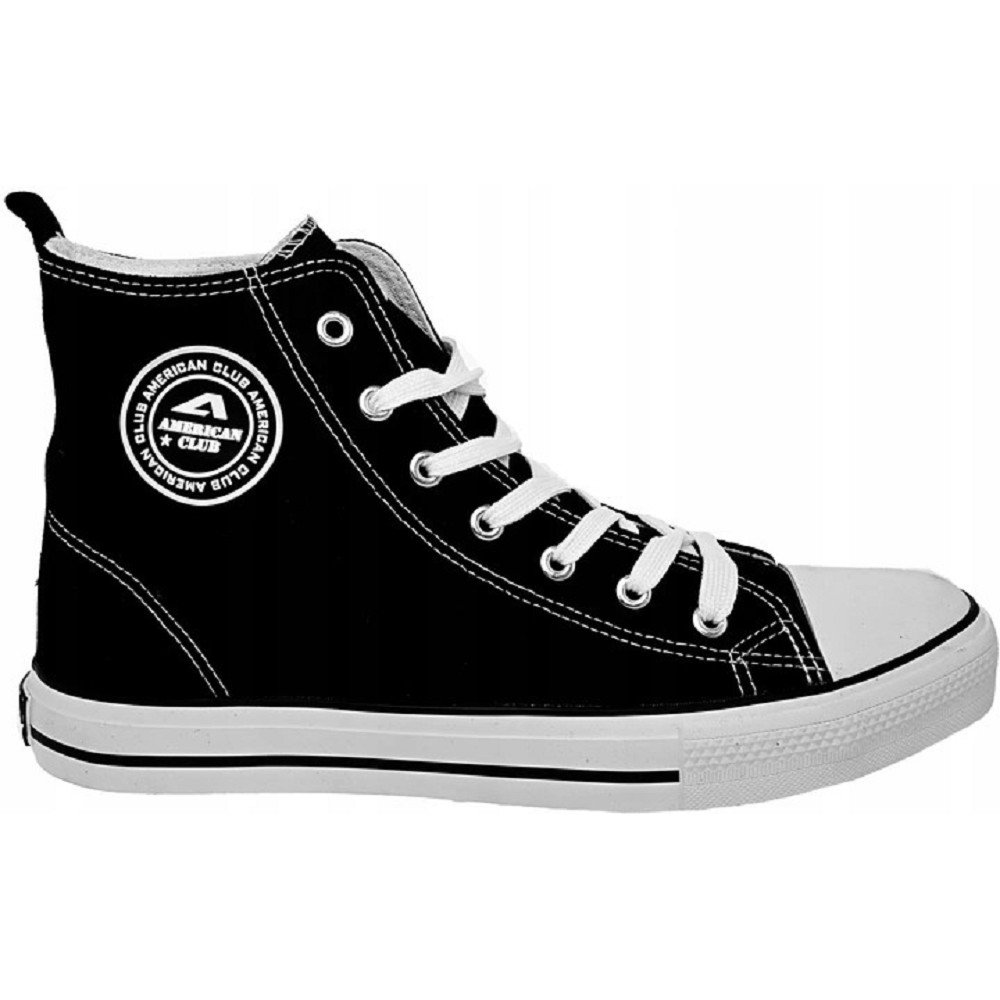 Obuv American Club LH70/23 kotníková teniska dámská. Model : LH70/23 Barva: černá , podrážka bílá Zapínání: šněrovací Vršek: látka Vložka : látka Nosek Bota: zaoblený Protiskluzová podrážka