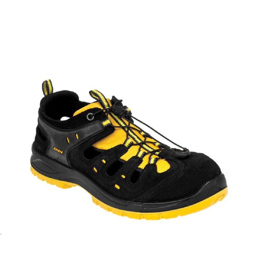 Obuv BNN BOMBIS LITE S1 bezpečnostní sandál s kompozitní tužinkou žlutá POPIS PRODUKTU Vzdušný bezpečnostní sandál na nástřikové podešvi vybavený kompozitní tužinkou. Pásek na jazyku a patní očko jsou opatřeny reflexním prvkem. Obuv je vhodná do vnitřních i venkovních suchých provozů. MATERIÁLOVÝ POPIS vrchový materiál: Velur broušená hovězinová štípenka 1.6 - 1.8 mm podšívka: syntetický materiál + mikrovlákno v patní části stélka: D-SOLE Black, anatomicky tvarovaná podešev: HIGHWAY PU/PU reflexní prvky