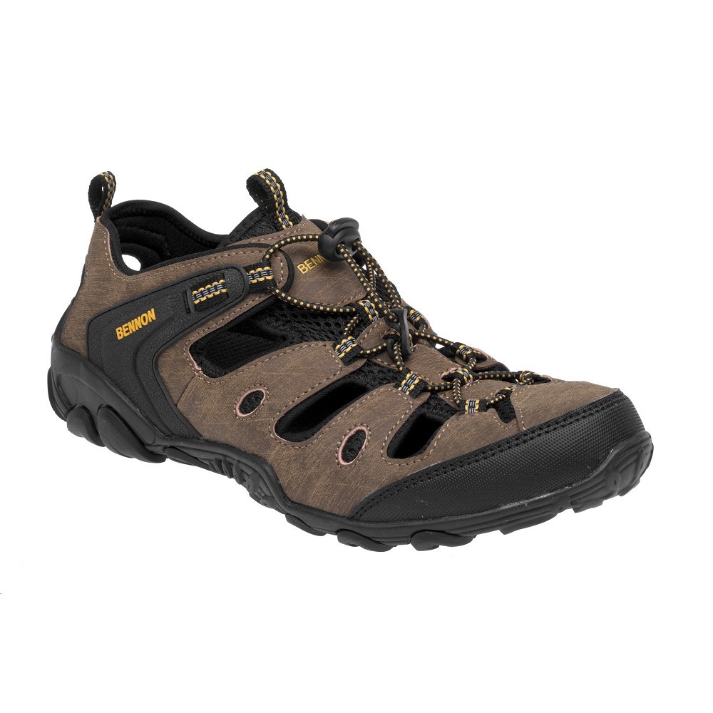 Obuv BNN CLIFTON Z60051 lehký sportovní sandál hnědé • POPIS PRODUKTU • Lehký sportovní sandál poskytuje díky stabilizační opoře a uzavřené patní části více stability a je vhodný pro aktivní využití volného času, běžné nošení či pohyb ve městě. • MATERIÁLOVÝ POPIS • vrchový materiál: Syntetický PU materiál + textilie MESH • podšívka: Action leather hovězinová useň 1.6 - 1.8 mm + textil • stélka: EVA + MESH, anatomicky tvarovaná • podešev: SPILLETA phylon/pryž • Kód:Z60051 • Velikosti:36-46
