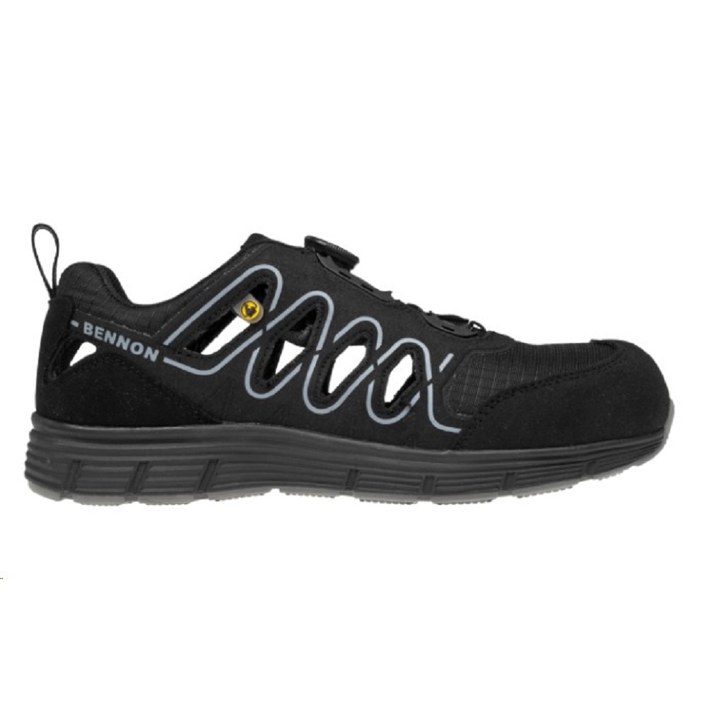 Obuv BNN REBEL S1P ESD LOW Z61148v62 otevřená polobotka černá POPIS PRODUKTU Sportovní otevřená polobotka vyrobená z lehkých moderních materiálů. Vybavená uzavíracím systémem ATOP pro pevné a rychlé zajištění obuvi, který šetří čas a zvyšuje bezpečnost. Obuv je také vybavena hliníkovou tužinkou a kevlarovou planžetou. Díky použitým materiálům, střihu a tvaru kopyta je obuv i v bezpečnostním provedení velmi lehká, vzdušná a pohodlná pro dlouhodobé nošení v práci i ve volném čase. NORMA: ČSN EN 61340-4-3:2002; klimatická třída 3 vrchový materiál: mikrovlákno + textilie MESH podšívka: textilie MESH stélka: anatomicky tvarovaná SUPREMA Gel podešev: CROSSETA EVA/pryž tužinka/planžeta: hliník/ kevlar Velikosti:37-47 Barva: černá
