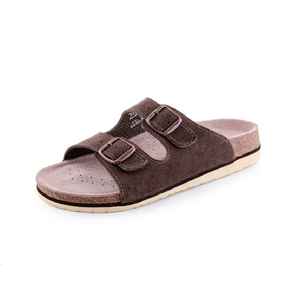 Obuv CORK ZETA dámské pantofle z hovězí semišové kůže hnědé • Sandál, dámský, s dvěma nártními pásky, podešev na klínku • Materiálové složení: Svršek i perforovaná stélka z hovězí semišové kůže, EVA podešev • Piktogramy: B1, B3, B5 • Rozdělení. Dámské • Normy: EN ISO 20347/A1:2007 SRA E • Velikost: 35-41