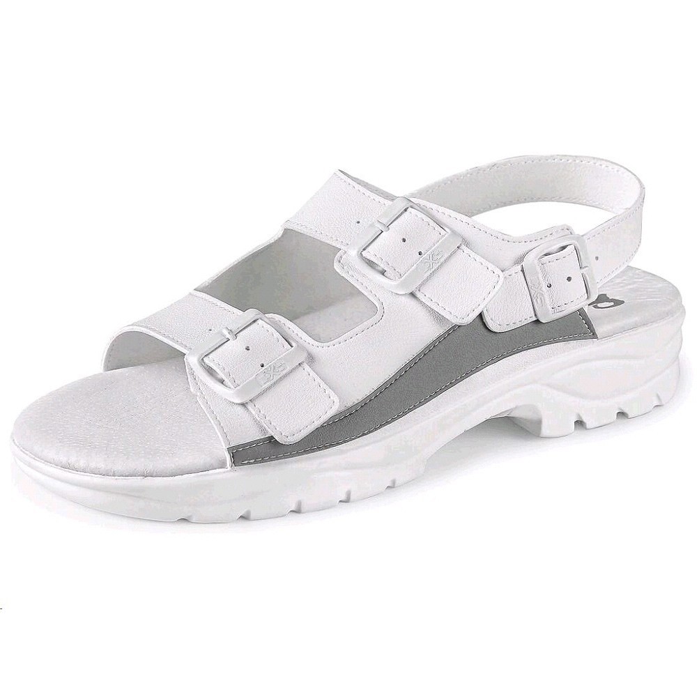 Obuv CXS PAOLA sandál bílá Sandál s nastavitelnými předními pásky a páskem kolem paty, podešev na klínku. Materiál: svršek z 2mm mikrovlákna, měkká, pohodlná stélka z vepřové kůže, podešev: jednohustotná PU. Velikost 35; 36; 37; 38; 39; 40; 41; 42; 43; 44; 45; 46; 47 Typ obuvi Sandál Značka CXS