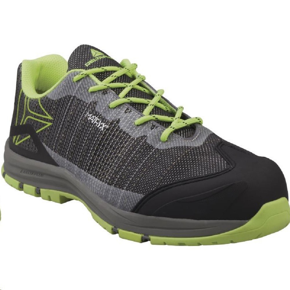 Obuv DELTA FLY S1P SRC nízká šedo-zelená Nízká obuv S1P HRO SRC Svršek: Technologie Matryx® složená z polyamidových vláken s polyuretanovým povlakem, monofilních polyesterových vláken, reflexivních vláken a zón z Kevlar®. Podšívka: Polyester. Vložka: Vyměnitelná, tvarovaná - polyester/EVA. Podrážka: Lepená - EVA/Gumová, nitril. Bez kovových částí. Barva šedo-zelená Velikosti 39-47