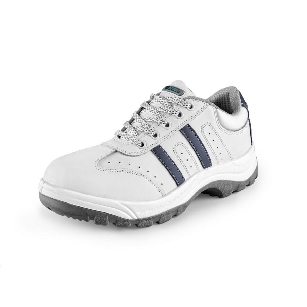 Obuv LARCH celokožená perforovaná polobotka • Polobotka, celokožená, perforovaná. • Materiálové složení: Svršek z štípenkové kůže, podšívka z prodyšné tkaniny mesh, PU-PU, olejivzdorná, antistatická, protiskluzová podešev. • Piktogramy: 1,2,3,4,5 • Normy: EN ISO 20347:2005/A1:2008 O1 FO SRC • Velikost: 35-47