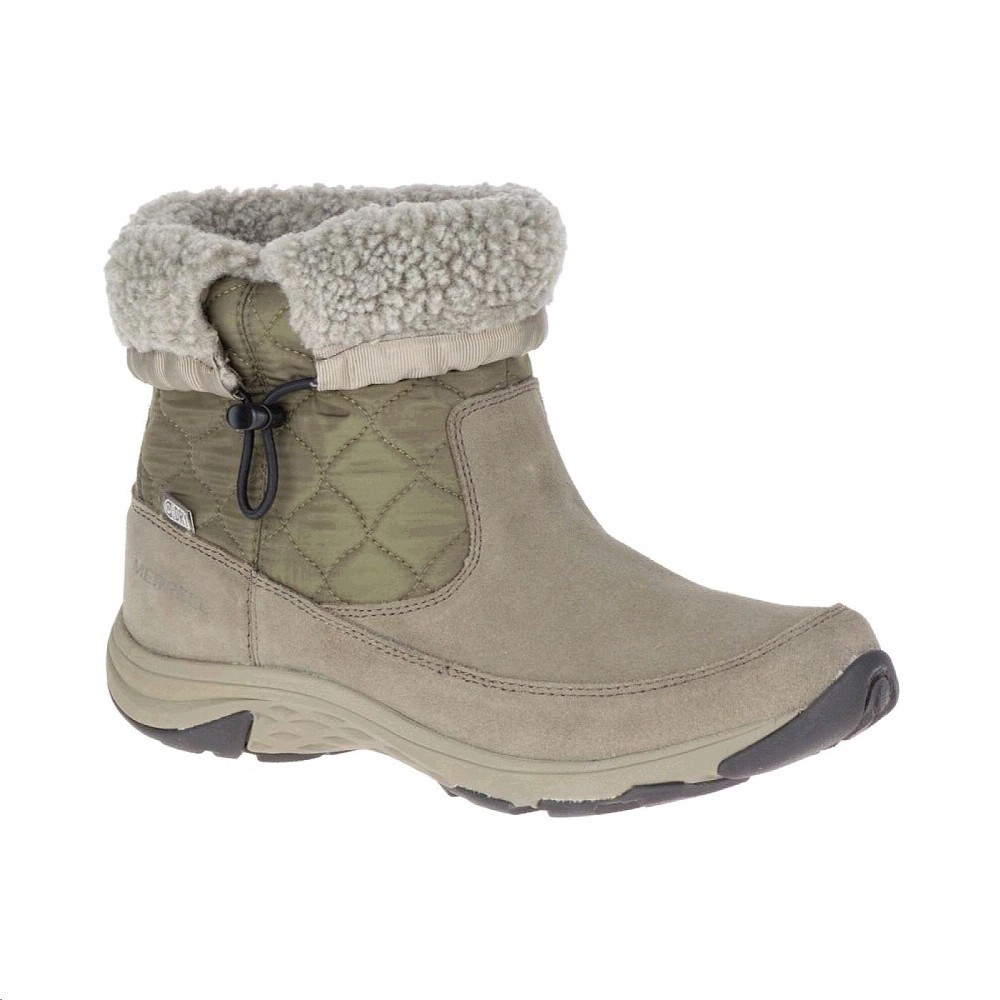 Obuv MERRELL J17912 APPROACH NOVA BLUFF PLR WTPF dámská kotníčková brindle Dámská obuv Merrell Approach Nova Bluff je ideální bota do zasněžené krajiny. Prošívaný textilní svršek se semišem a voděodolnou úpravou M-Select™ Dry dokonale udržuje nohu v suchu tím, že zabraňuje proniknutí vody dovnitř a zároveň odvádí vlhkost ven. Teplo uvnitř boty je díky lehkému zateplení M-Select™ Warm a fleecové podšívce. Tvarovaná vyjímatelná stélka Kinetic Fit™ napomáhá správnému nášlapu a předchází únavě chodidla. Přirozený obych chodidla a lepší stabilitu zajišťuje nylonová podpora klenby. Výbornou přilnavost na jakémkoliv povrchu zajišťuje systém M-Select™ Grip. Velikosti 3,5-9,5