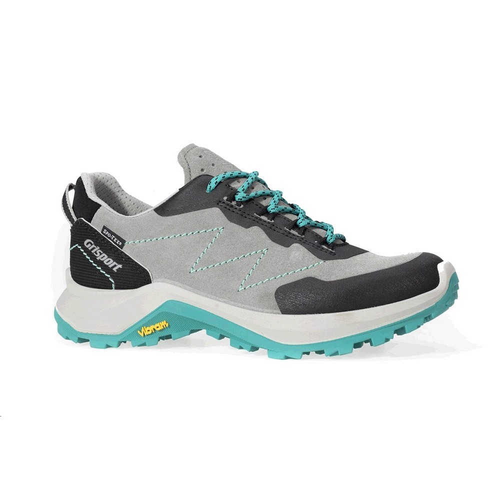 Obuv MONTASIO GRISPORTdámská šedo-modrá polobotka treková kožená Nízká trekovka pro všestranné použití. Vzít si ji můžete na výlety do přírody do lehkých terénů nebo např. na rekreační běh po nezpevněných površích. Profilovaná podešev Vibram je pro tyto aktivity ideální. Svršek – hovězinový velur Podešev – Vibram Mezipodešev - PU Váha – 780 g (pár vel. 37) Velikosti 36-42