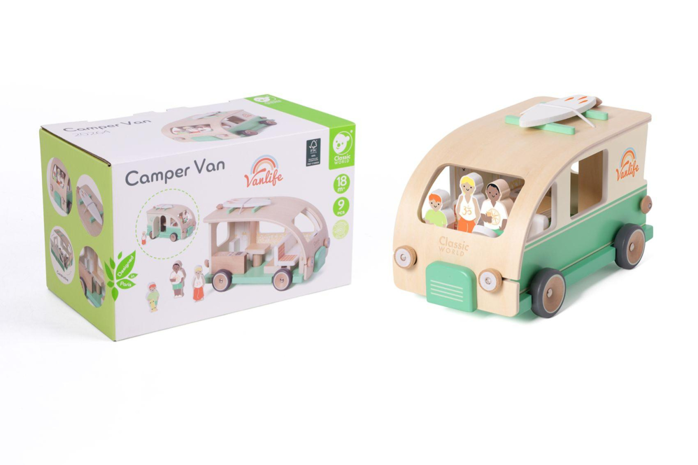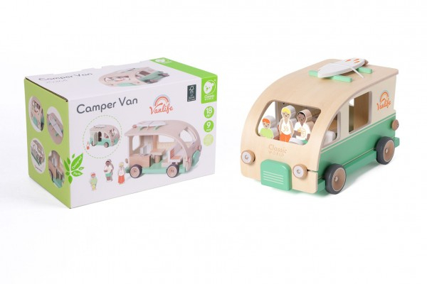 Tato originální vkládačka v sobě spojuje hru a objevování – děti vkládají různé tvary nebo figurky do správných otvorů a při tom rozvíjejí jemnou motoriku, logiku i představivost. Vozidlo má pevná kolečka a lze s ním jezdit, takže nabízí i možnost aktivní hry. Díky přírodnímu dřevu a jemnému designu je nejen zábavné, ale i esteticky příjemné. Velikost balení: 26 m x16cm x15cm Vhodné pro děti od 18 měsíců