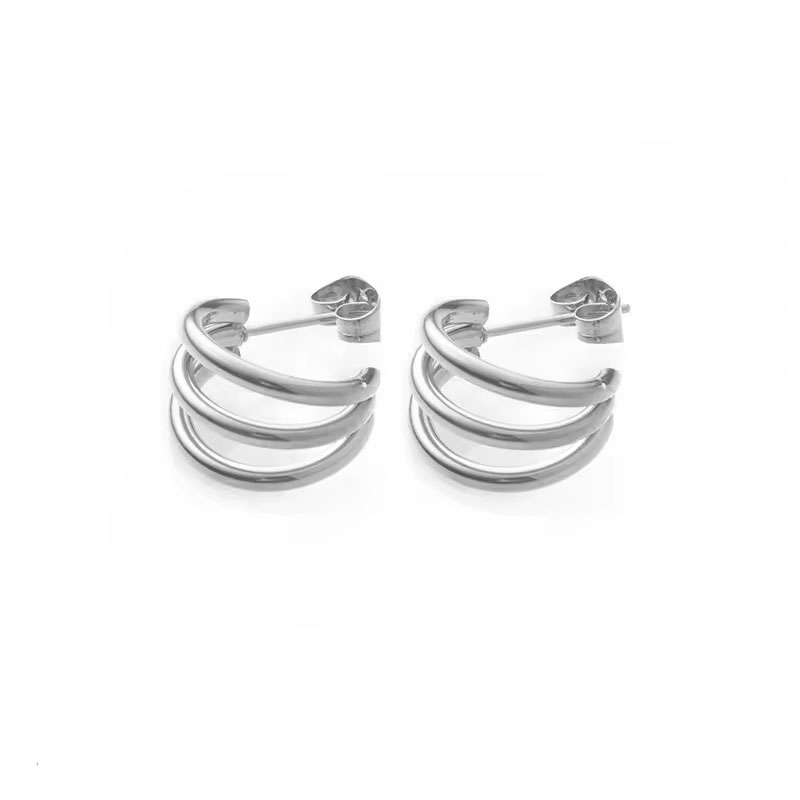 Objevte minimalistickou eleganci těchto stylových ocelových náušnic, které v sobě spojují nadčasový design a moderní vzhled. Jejich unikátní trojitá struktura vytváří dojem vrstvení, což dodává náušnicím sofistikovaný a výrazný vzhled. Jsou vyrobené z kvalitní chirurgické oceli, která je odolná vůči poškrábání, nezpůsobuje alergie a zachovává svůj lesk i při dlouhodobém nošení. Díky svému univerzálnímu provedení jsou tyto náušnice ideální volbou pro každodenní nošení i slavnostní příležitosti. Hodí se jak k elegantním outfitům, tak k ležérnímu stylu, kde podtrhnou přirozenou krásu nositelky. Pohodlné zapínání na puzetu zajistí bezpečné a snadné nošení po celý den. 💡Tip: Pokud chcete zvýraznit efekt vrstvení, zkombinujte tyto náušnice s jemnými kroužky nebo minimalistickými náušnicemi na druhé dírce v uchu.
