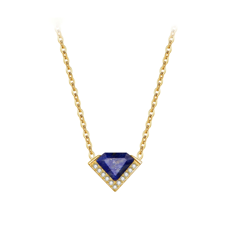Elegantní ocelový náhrdelník z autorské kolekce Barvy podzimu spojuje moderní design s kouzlem přírodního kamene lapis lazuli. Trojúhelníkový přívěsek s jemným osazením drobnými zirkony září na pozlaceném řetízku a působí jako decentní, avšak výrazný šperk, který dokáže zvýraznit ženskou eleganci.Lapis lazuli zaujme svým hlubokým modrým odstínem s jemnými zlatavými tečkami, připomínajícími hvězdnou oblohu. V kombinaci s teplým leskem pozlacení a chladnou precizností chirurgické oceli vzniká harmonické spojení síly, klidu a jemného luxusu.Náhrdelník je ideální pro ženy, které milují originální doplňky s duší. Skvěle se hodí pro každodenní nošení i pro slavnostní příležitosti, kdy podtrhne přirozený půvab a styl nositelky. 💡 Tip: I když patří do kolekce Barvy podzimu, svým nadčasovým designem se hodí pro každý den v roce. Na podzim krásně doplní hřejivé odstíny hnědé, béžové a vínové, zatímco v létě zazáří na opálené pokožce ve spojení s bílou nebo krémovou.