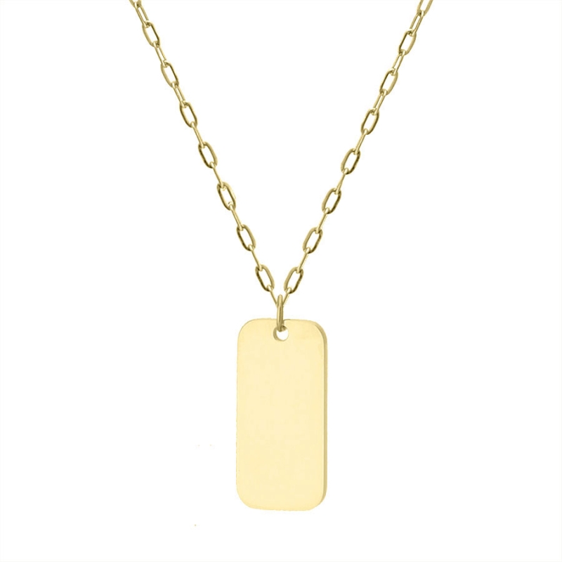 Minimalistický ocelový náhrdelník s jemnou destičkou v elegantním zlatém tónu je nadčasovým doplňkem pro každodenní nošení i speciální příležitosti. Jeho čistý design umožňuje snadné kombinování s dalšími šperky, ať už preferujete vrstvení různých náhrdelníků nebo vyniknutí jednoho solitérního kousku. Díky vysoce kvalitní chirurgické oceli si zachovává svůj lesk a odolnost proti poškrábání i při dlouhodobém nošení.Tento náhrdelník se skvěle hodí jak pro ženy, tak pro muže, což z něj činí univerzální módní doplněk. Destička poskytuje možnost gravírování, takže může být personalizovaným šperkem s iniciálami, datem či jiným významným symbolem. Jeho jednoduchý a elegantní styl z něj dělá dokonalý doplněk pro moderní i klasické outfity. 💡Tip: Hledáte originální šperk, který můžete upravit podle svých představ? Na tento náhrdelník lze nechat vyrýt text, symbol nebo iniciály a vytvořit tak jedinečný kousek se zvláštním významem.