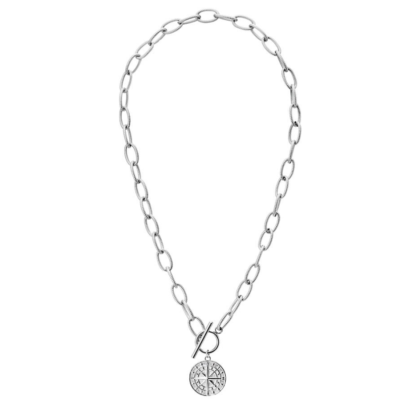 Vylaďte svůj styl moderním náhrdelníkem Vanessa z řetízku s velkými oky se zdobenou texturou a ocelovým medailonkem v podobě větrné růžice. Větrná růžice je považována za talisman, který pomáhá nalézt životní směr, je zdrojem síly a energie. Náhrdelníky s velkými články jsou nesporným hitem této sezóny, který musí být v šatníku každého znalce módy.