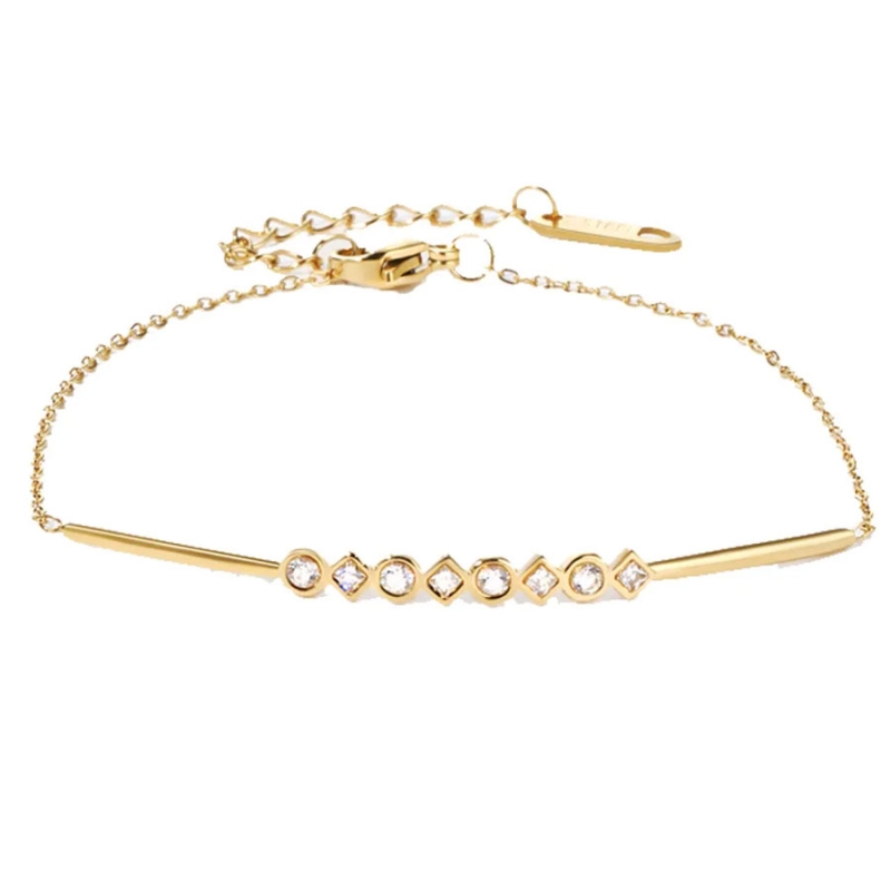 Ocelový náramek Sara je nádherným spojením jednoduchosti a rafinovanosti. Náramku dominuje osm čirých zirkonů, které vytvářejí jemný třpyt a dodávají mu vzácnou jiskru krásy. Vyrábíme ho z chirurgické oceli, což znamená nejenom krásný vzhled, ale také vysokou odolnost a trvanlivost. Díky povrchové úpravě 18k žlutým zlatem PVD získává náramek nádech luxusu a noblesy, čímž se stává vynikajícím doplňkem pro jakoukoli příležitost. Jeho jemný a elegantní design umožňuje nošení samostatně pro subtilní a vkusný vzhled nebo ve spojení s dalšími šperky pro výraznější styl. Tento náramek se stává skvělým společníkem pro každodenní nošení i pro zvláštní příležitosti. Jeho nadčasový styl a precizní zpracování zajistí, že bude součástí vaší šperkařské sbírky po dlouhou dobu.