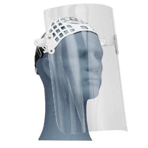 Štít s náhlavním křížem, umožňuje současné použití dioptrických brýlí, rozměr: 330 x 290 mm. Vhodná ochrana očí, obličeje a dýchacích orgánů před mechanickými částicemi.