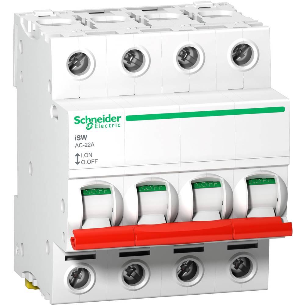 Odpínač iSW, 4P, 100A, 415 V AC, červená. Řada: Acti 9 - krátký označení jednotky: iSW - spínač použití: spínání (OTEVÍRÁNÍ a Schlie?en od obvody pod zátěž), řezání elektrických obvodů.