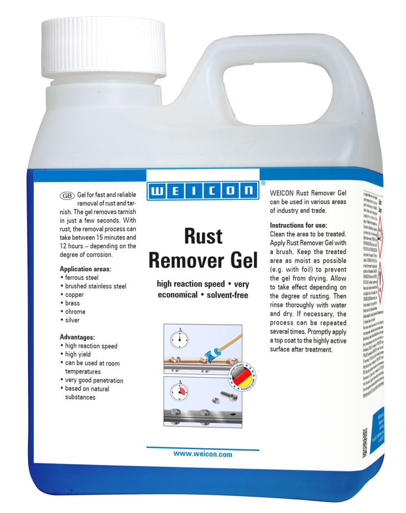 WEICON gelový odstraňovač rzi je určený pro rychlé a spolehlivé odstranění rzi a dehtu z kovových povrchů. Díky gelové konzistenci dobře přilne i na svislé plochy, snadno proniká a zajišťuje efektivní čištění. Lze jej použít na železnou ocel, kartáčovanou nerezovou ocel, měď, mosaz, chrom a stříbro. Modrý gel funguje při pokojové teplotě, není potřeba jej zahřívat a jeho přírodní složení je šetrné k povrchům i životnímu prostředí.