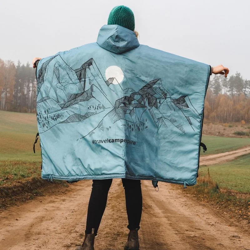 Vlastnosti: Unikátní konstrukce nabízí maximální pohodlí, ochranu proti větru a teplo, zejména díky vyhřívacímu panelu umístěnému na zadní straně. Panel je napájen USB kabelem, který lze pohodlně uložit do přední kapsy a připojit k powerbance, čímž poskytuje extra teplo a pohodlí i v náročných podmínkách. Pončo OFFLANDER, vyrobené z odolného nylonu a vyplněné syntetickou bavlnou, je skvělou alternativou ke klasickým bundám - je volné, umožňuje volnost pohybu a lze jej nosit přes další vrstvy oblečení. Je ideální jako spací pytel, přikrývka nebo tradiční pončo, což z něj činí nezbytnou součást vybavení pro kempování nebo treking. TECHNICKÉ ÚDAJE: - JE VYBAVENA SPECIÁLNÍMI TKANINAMI, KTERÉ JSOU SOUČÁSTÍ BALENÍ: Materiál konstrukce: nylon a zateplená vrstva syntetické bavlny Rozměry: 190 x 130 cm (D x Š) Hmotnost: 1140 g Barva: modrá