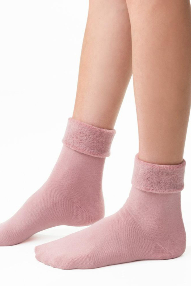 Hladké dámské froté ponožky s ohrnutým lemem. Model je vyrobený z nejkvalitnější bavlny a je k dostání v několika barvách. Ponožky jsou měkké a teplé a jsou ideální pro chladné zimní dny.