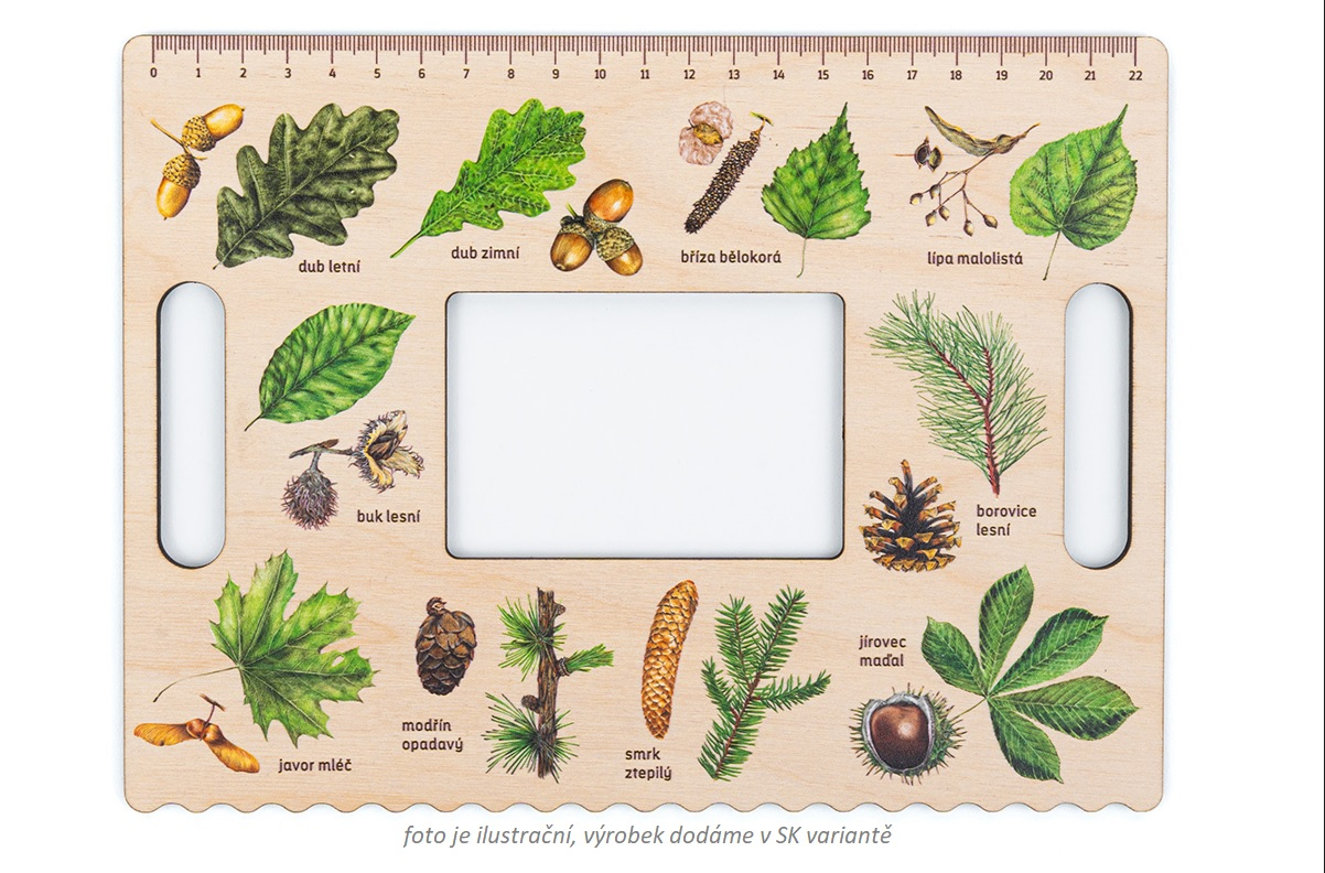 Okienko plné poznania Okienko hravého BADATELA umožní deťom prezerať stromy a ďalšie prírodné prvky zblízka. Je to zábavný a jednoduchý nástroj, ktorý podporí detskú zvedavosť a naučí ich zamerať pozornosť aj na najmenšie detaily. Zoznamuje deti s bežnými stromami v našom okolí. Na jednej strane sú ilustrácie listov a plodov. Z druhej strany ilustrácie kôry stromov. Súčasťou sú ZADARMO na stiahnutie pracovné listy. A by sa vám s okienkom lepšie pracovalo, nájdete na ňom QR kód s pracovnými listami, ktoré vás navedú na možné aktivity s deťmi Okienko hravého BADATELA je súčasťou bádateľského balíčka, ale môže slúžiť aj samostatne. Bádateľské okienko z Lesného sveta Balenie obsahuje 1x bádateľské okienko v rozmere 23,5 × 17,5 cm. Nemá ochranný obal (= mimimálna ekologická záťaž). Česká výroba z Hradca Králové. Vyrábame z kvalitného dreva s certifikáciou PEFC. Autorom kresieb sú českí ilustrátori, obrázky sú chránené autorskými právami. Kvalitné podporné materiály pre rodičov aj pedagógov Vrecúško hravého BÁDATEĽA Urobte výlet, prechádzku, alebo náučný chodník ešte zábavnejší Batôžtek hravého BADATELA je ideálnym sprievodcom do sveta stromov, ktorý je plný hier, aktivít a objavovania. Batôžtek obsahuje obsiahle hry, kde každá aktivita je navrhnutá tak, aby deti hravou formou učila poznávať stromy, ich listy, plody aj štruktúry. Preskúmať batôžtek