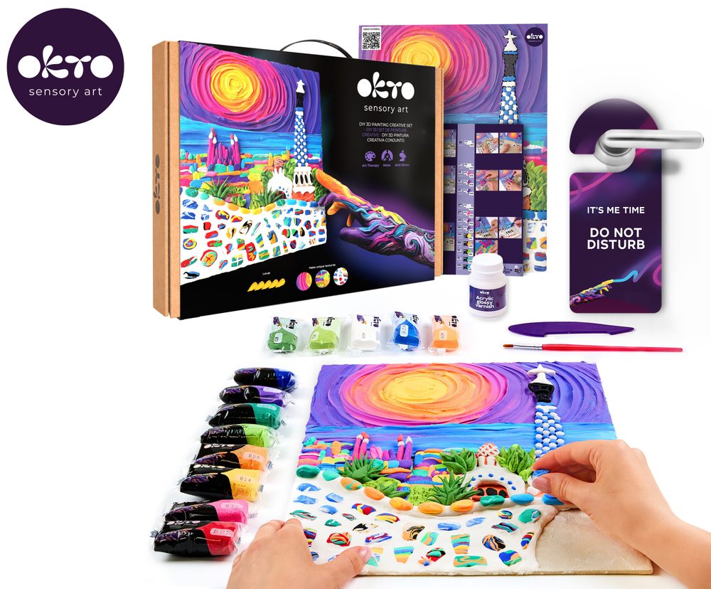 OKTO Malování hmotou motiv Park Guell - Barcelona. Poznejte jedinečnou krásu architektury Antonia Gaudího s kreativní sadou OKTO Malování hmotou. Na přírodním plátně o velikosti 30 × 40 cm si díky modelovací hmotě a barvám vytvoříte originální 3D obraz inspirovaný slavným parkem Güell v Barceloně. Hotové dílo se stane stylovou dekorací i originálním dárkem. Obsah balení: přírodní plátno (30 × 40 cm) obrázkový návod krok za krokem modelovací nástroj sada samoschnoucí modelovací hmoty akrylový lak…