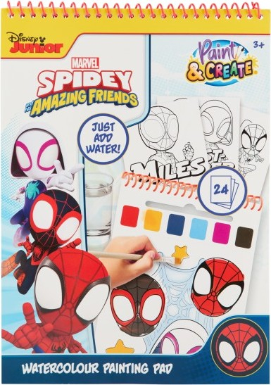 Omalovánky s vodovkami Spidey v kroužkové vazbě. K vymalování použijte pouze vodu. 24 listů.