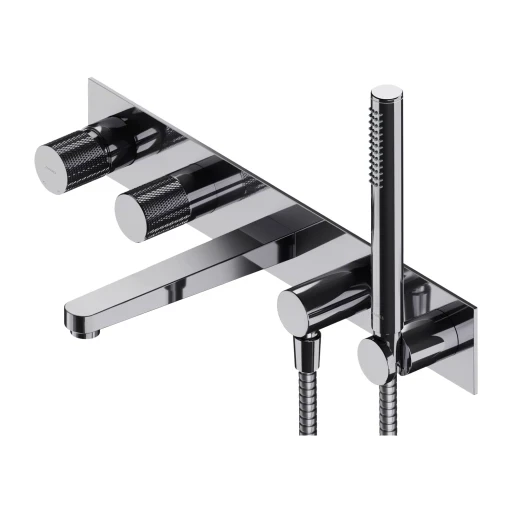 Podomítková vanová baterie z kolekce OMNIRES CONTOUR s integrovanou sprchovou rukojetí zaujme svým extravagantním tvarem a dekorativními detaily. Minimalistický architektonický design s diamantovým frézováním zaujme rafinovanou kombinací textur a dokonalým zpracováním. Symetrický tvar baterie dokonale ladí s vanou a vytváří harmonickou kompozici. Podomítková instalace zaručuje úsporu místa a snadné čištění. Baterie je vyrobena z vysoce kvalitní mosazi a vybavena nejkvalitnější keramickou kartuší. Chrom je univerzální povrchová úprava se stříbrnou barvou a dokonale hladkým, lesklým povrchem. Design: Paulina Shacalis, Studio OMNIRES Ocenění: Cena Red Dot Design Award, Must Have Ocenění: Dobrý design rozměr rozety: 48 x 8 cm dosah výtoku: 20,5 cm minimální hloubka instalace: 7 cm dva vstupy (pro teplou a studenou vodu): 1/2” mosazná sprchová rukojeť, 1 funkce sprchová hadice v ocelovém pouzdře, délka: 125 cm skrytý prvek součástí balení