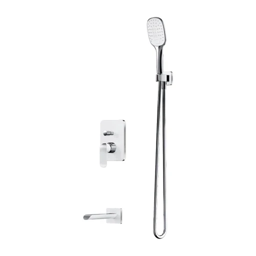 Kolekce OMNIRES SACRAMENTO se vyznačuje dokonalým zpracováním a moderním designem vyznačujícím se jemnými křivkami viditelnými v detailech, které jemně odrážejí světlo. Díky této kombinaci vypadá moderní forma jemně a elegantně. Bílá a chrom jsou originální kombinací bezchybných povrchů poskytujících univerzální efekt a světlý vzhled. podomítková sprchová a vanová baterie (SC2335XCRB) nástěnná hubice (WDSACRAMENTOCRB), dosah hubice 19,9 cm ruční sprcha (DAVIS-RCRB), 3 druhy proudu: dešťový, masážní, smíšený sprchová hadice s PVC krytem (SILVER-X150SL), délka: 150 cm mosazná úhlová přípojka (8815CRB) s držákem na sprchu