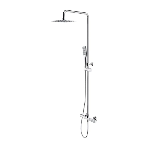 termostatická sprchová baterie zámek horké vody při 38 °C Dešťová sprcha z nerezové oceli (WGU220CR), rozměr: 20 x 20 cm, dosah od zdi: 43 cm sprchová rukojeť (HUDSONX-RCR), 1 funkce sprchová hadice v ocelovém pouzdře, délka: 150 cm dešťová sprcha/spínač průtoku zabudovaný v knoflíku pro regulaci vody nastavitelná výška, minimální/maximální výška systému: ~90 cm/~130 cm
