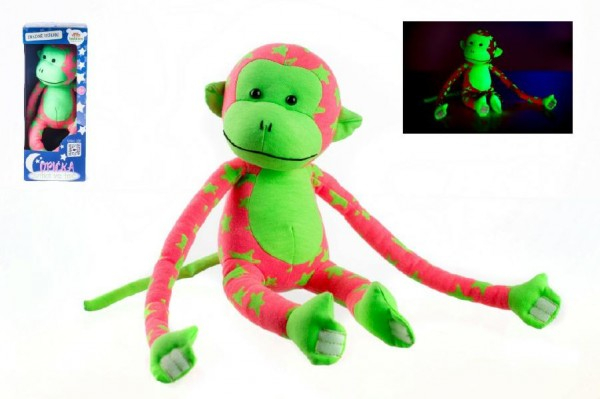 Opička pomůže dětem snadno usnout a klidně spát. V noci svítí jako noční obloha plná hvězd. Když ji pstavíte na denní světlo nebo pod lampičku, vydrží ve tmě svítit i několik hodin. Díky suchému zipu jednoduše sepnete ruce i nohy k sobě. Velikost opice: 45 cm Rozměr krabice: 13,5 x 33,5 x 12,5 cm Vhodná od 0 let